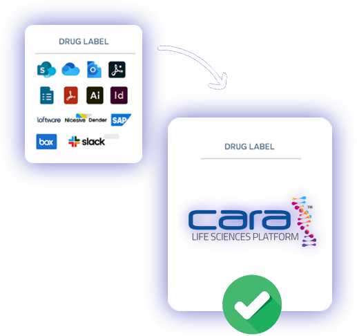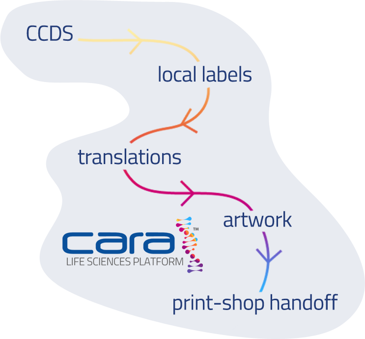 With CARA Lifesciences Platform, every step of the label lifecycle lives in one place from CCDS to translations, ongoing simultaneous variations, artwork, Change Requests, and even print-shop sharing.